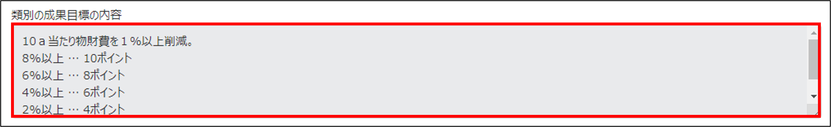 選択した「類別」に対する目標とする内容に関する数値を入力してください。