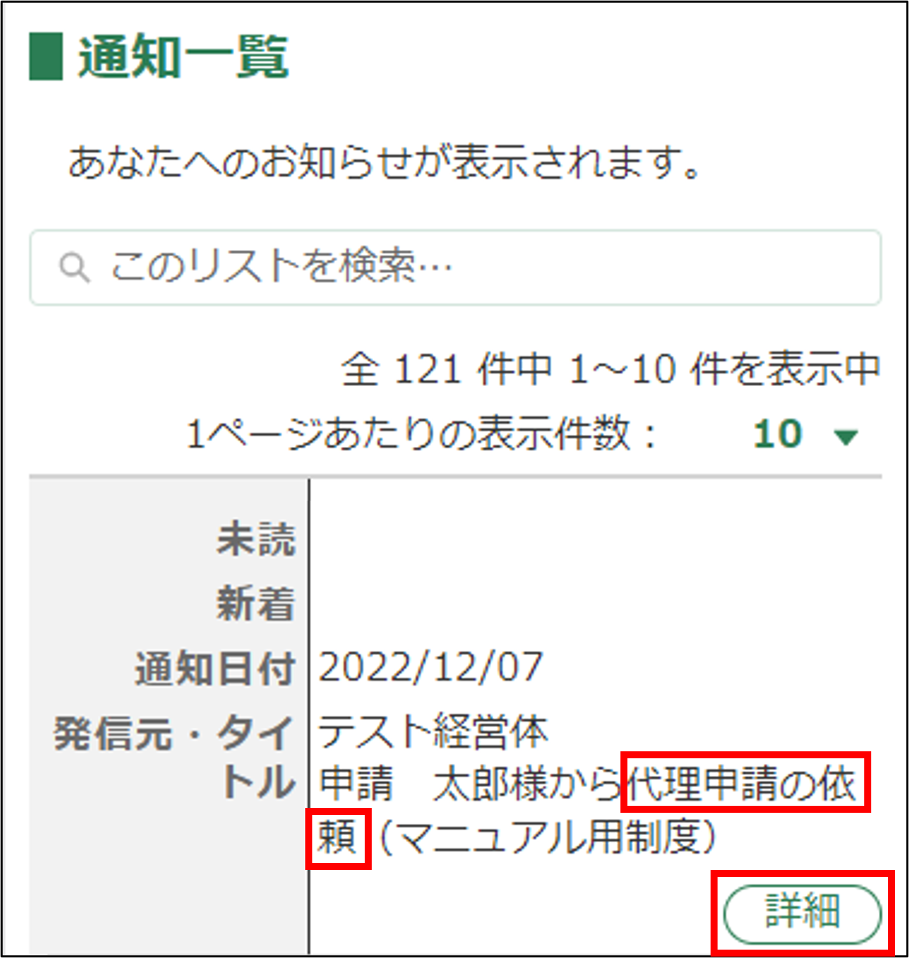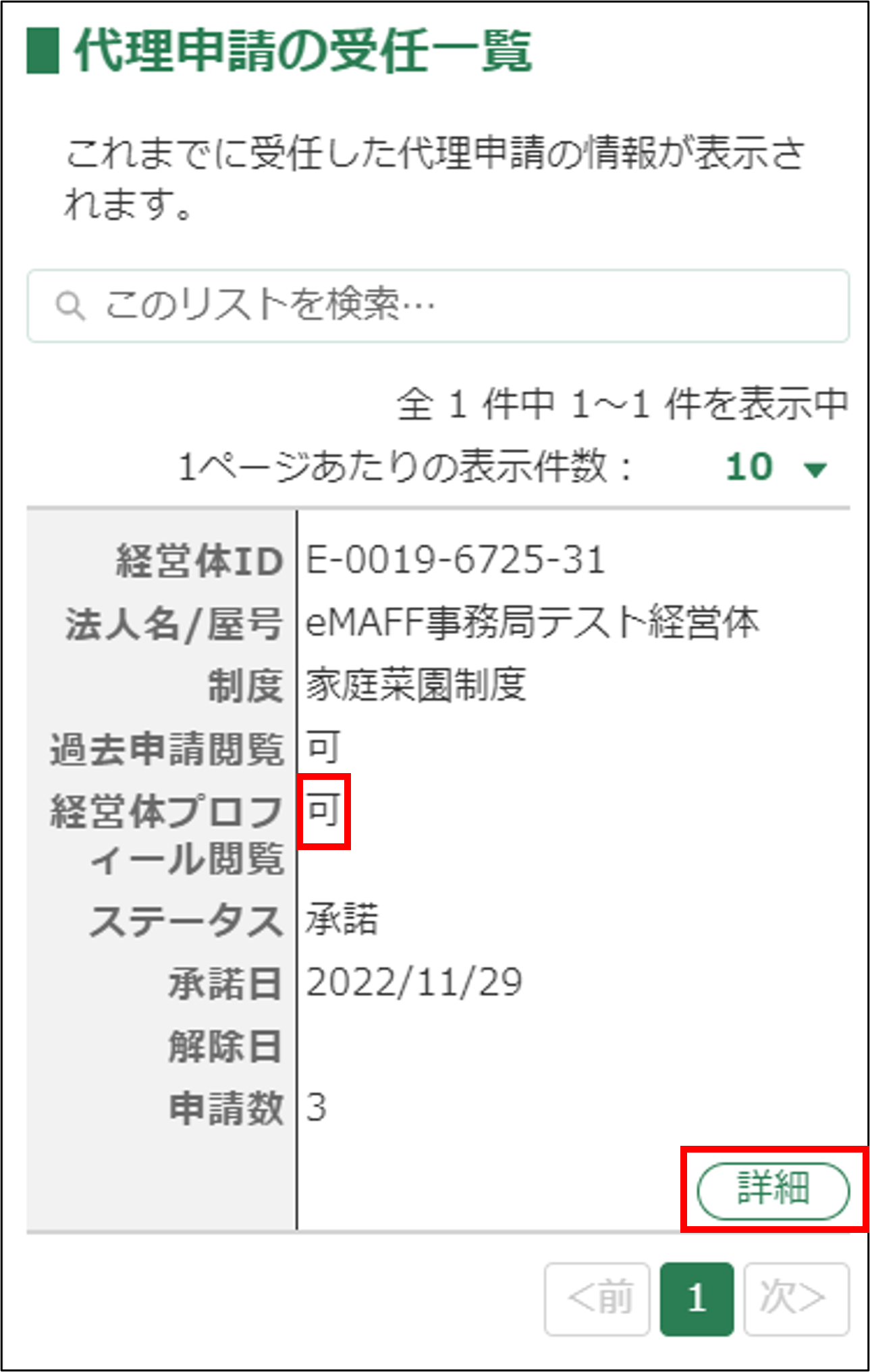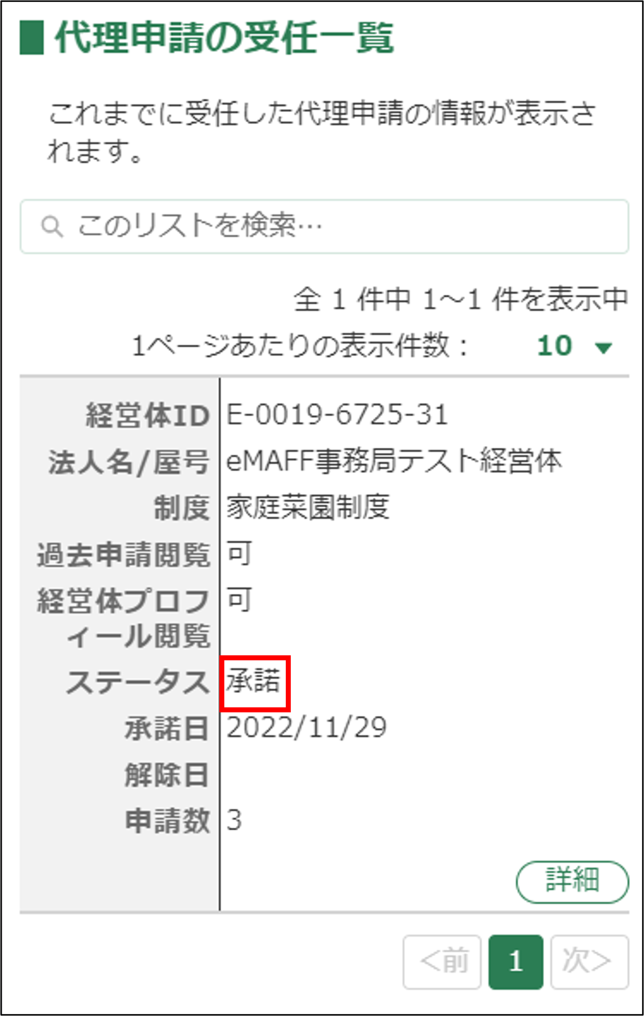 申請代行の依頼を承諾した場合、依頼元のステータスが「承諾」になっていることを確認します。