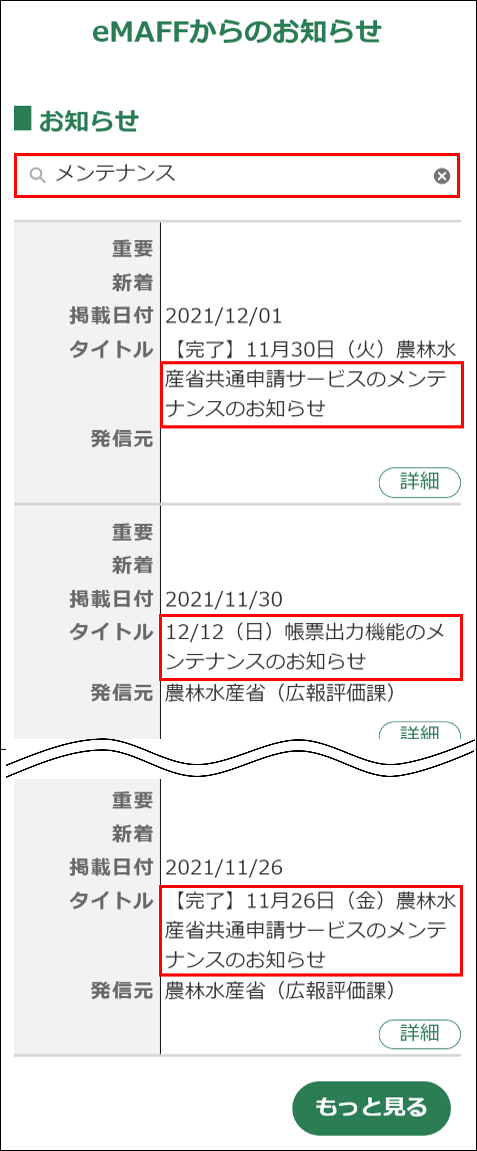 2.入力した文言を含む項目が表示されます(部分一致)。