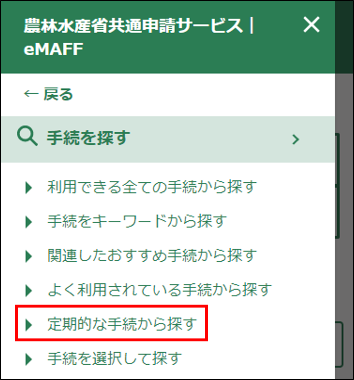 申請したい手続を、定期的な手続の一覧から探す手順を記載します。