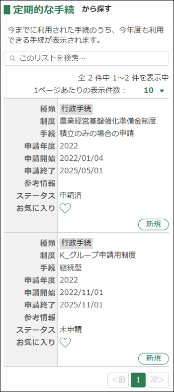 4.「定期的な手続から探す」が表示されます。過去に申請した手続のうち、公開期間中のものが表示されます。