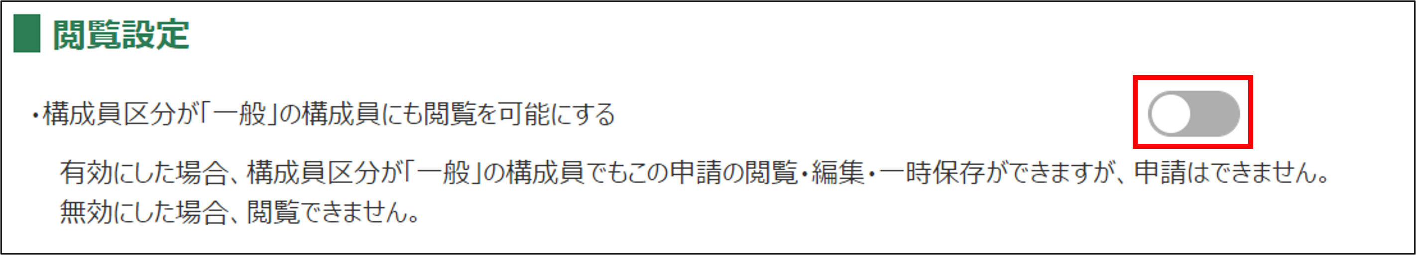 「(有効)」にした場合、構成員区分が「一般」の方にも申請情報の閲覧・編集を可能とします(申請はできません)。