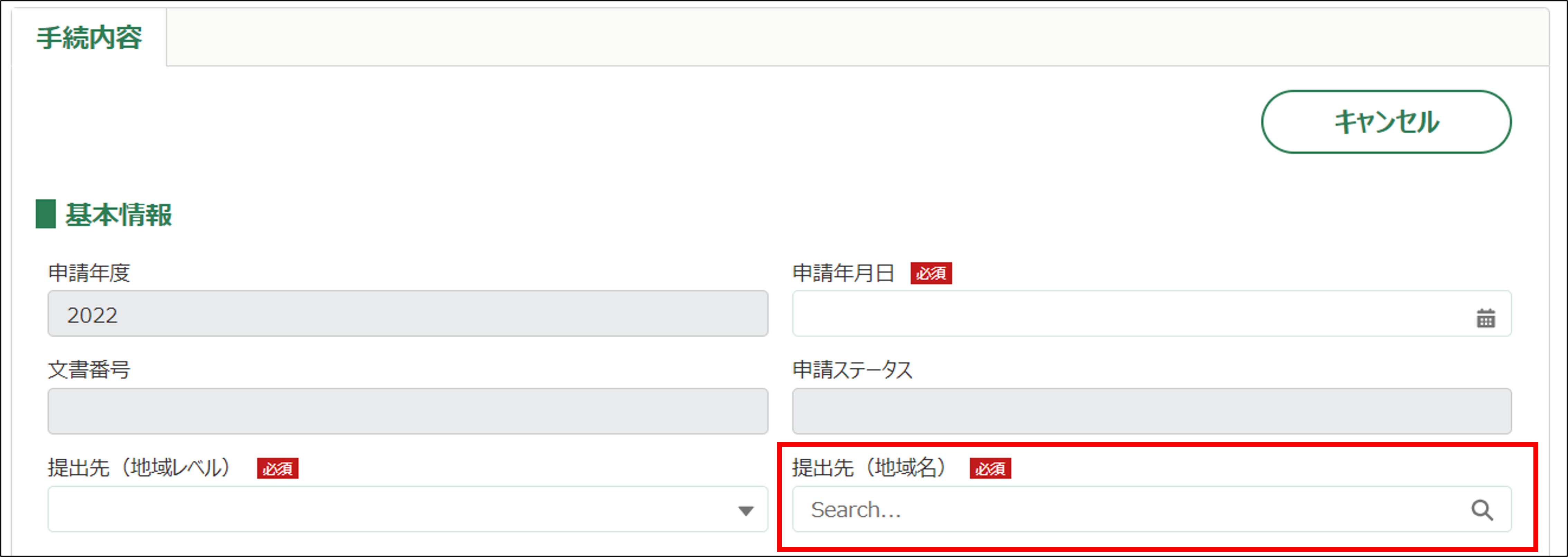 3.「提出先(地域名)」欄に提出先の地域名を入力します。