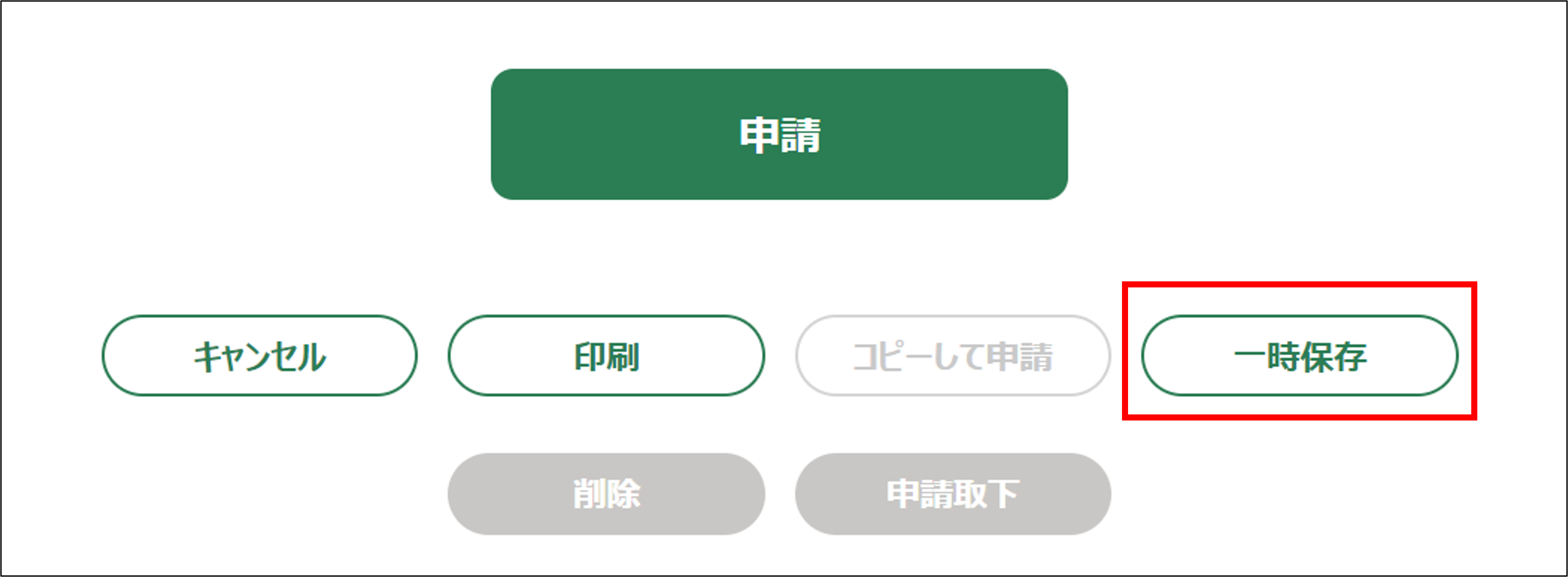 5.直ちに申請しない場合、一時保存が可能です。一時保存については、「入力を中断し一時保存する・再開する」をご参照ください。