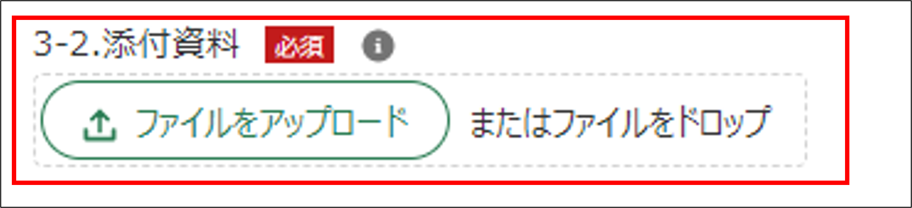 2.ファイルを添付する場合、「ファイルをアップロード」ボタンをクリックし、「開く」ウインドウからファイルを選択するか、「またはファイルをドロップ」欄にファイルをドロップします。