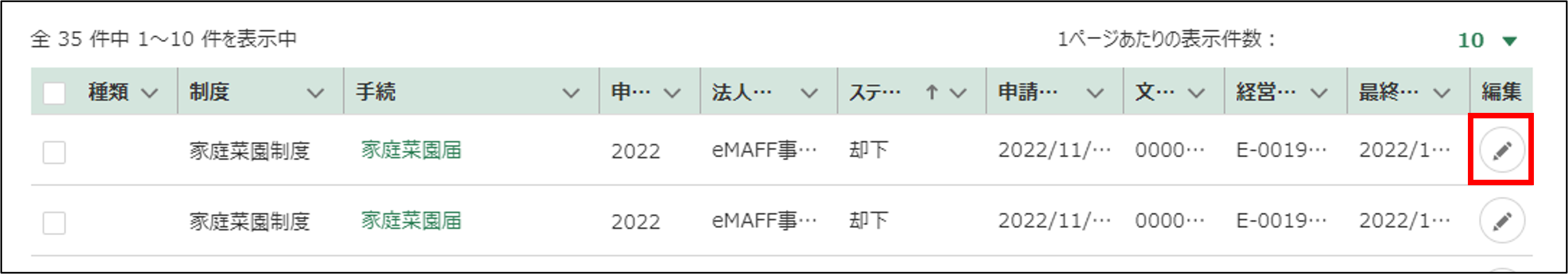 4.検索結果から、コピーしたい申請の「」ボタンをクリックします。