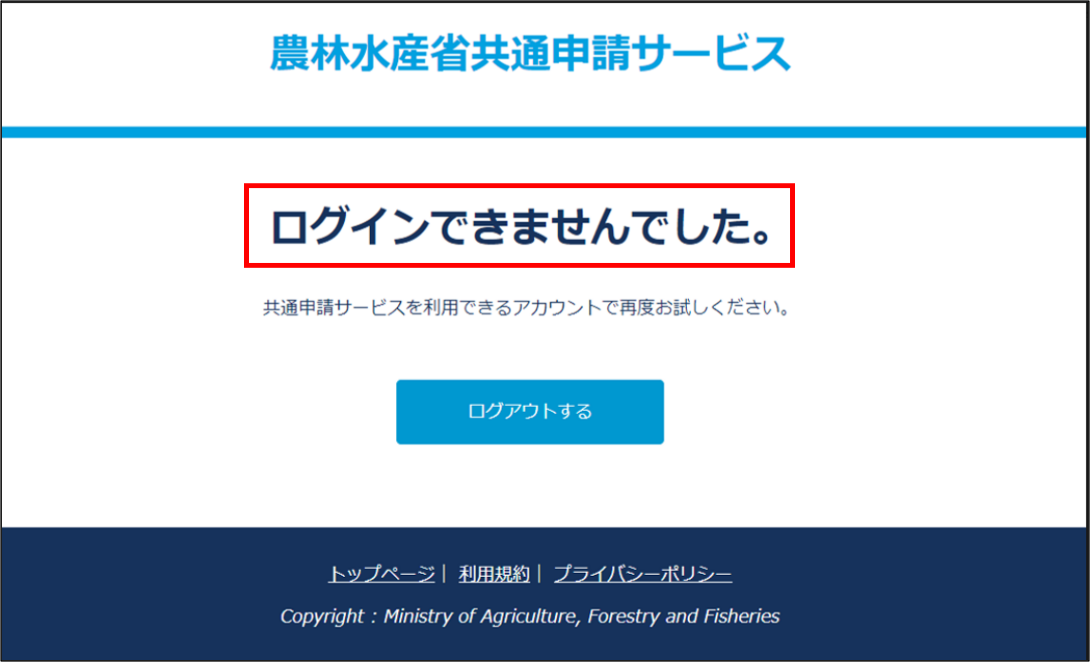 アカウントが「無効」又は「有効期限切れ」の場合、以下の画面が表示されます。 コールセンターにお問合せください。