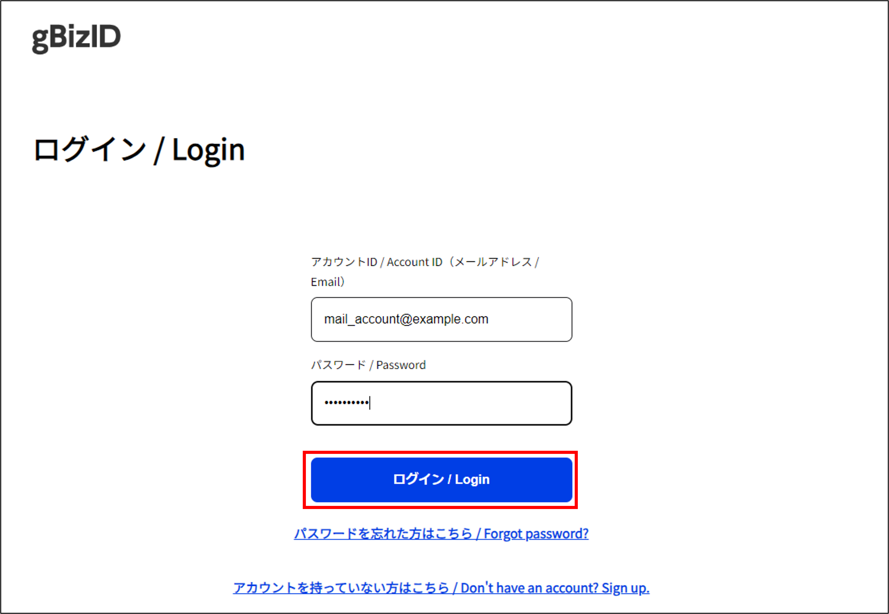 5.「アカウントID」にgBizID(登録メールアドレス)を入力します。