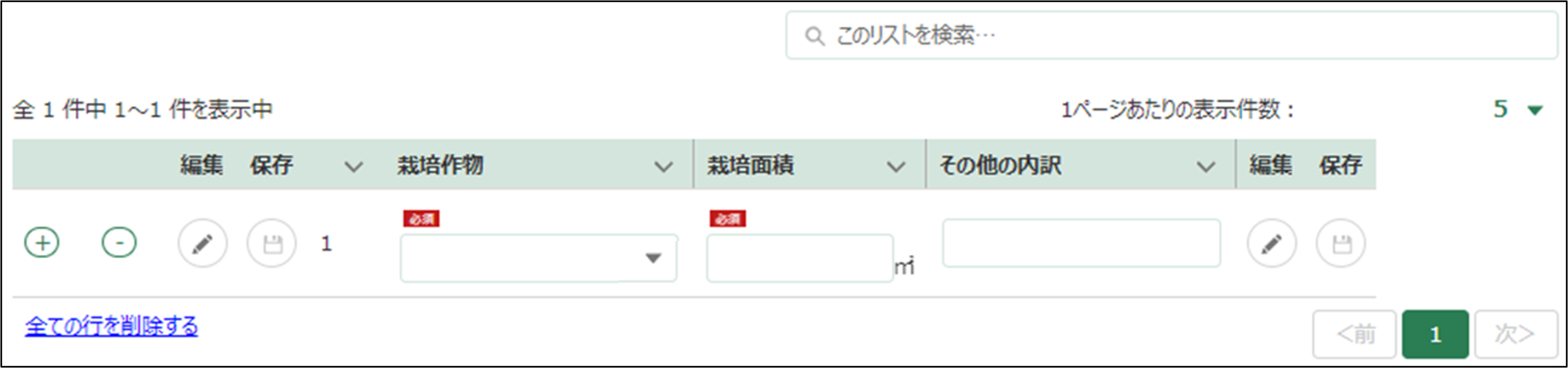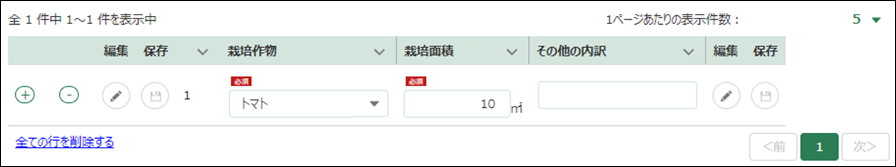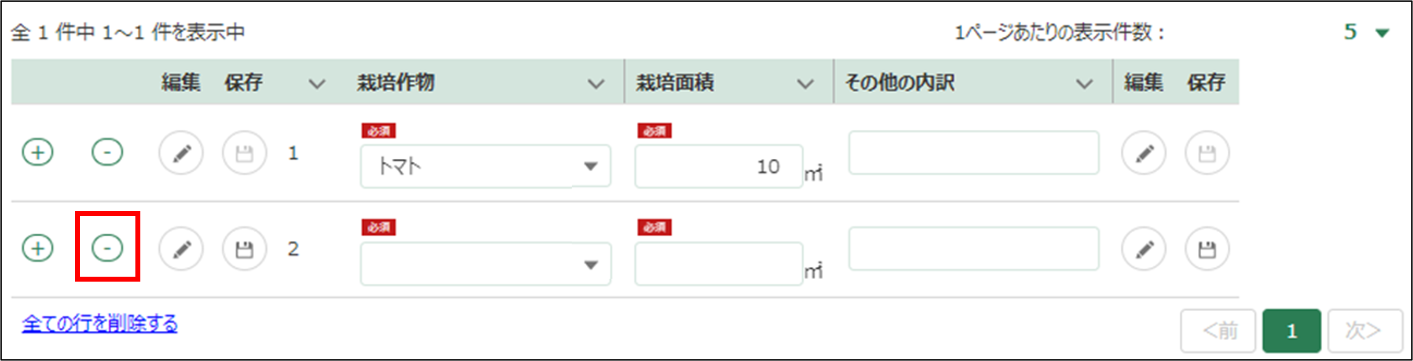 1.追加した行を削除する場合は、画面左の「」ボタンをクリックします。