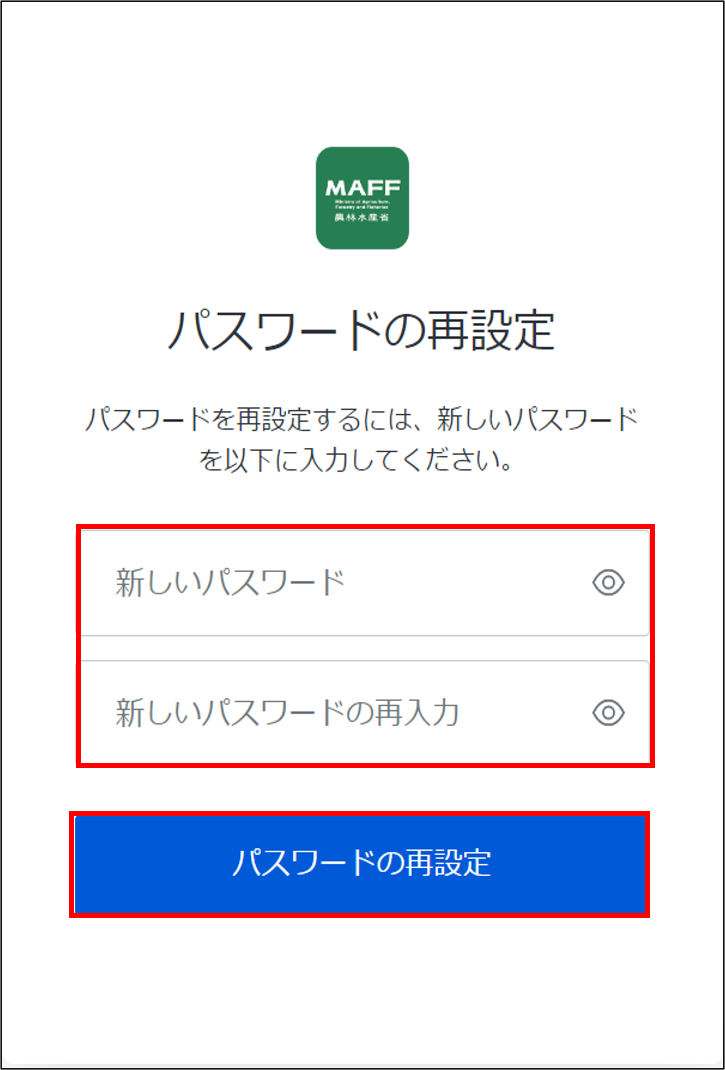 続いて、手順7で設定した新しいパスワードでログインを行います。「新eMAFF IDでログインする」の手順3以降をご参照ください。