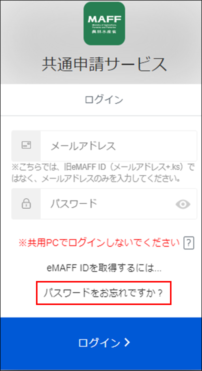 (3)旧eMAFF IDのパスワードを忘れた場合