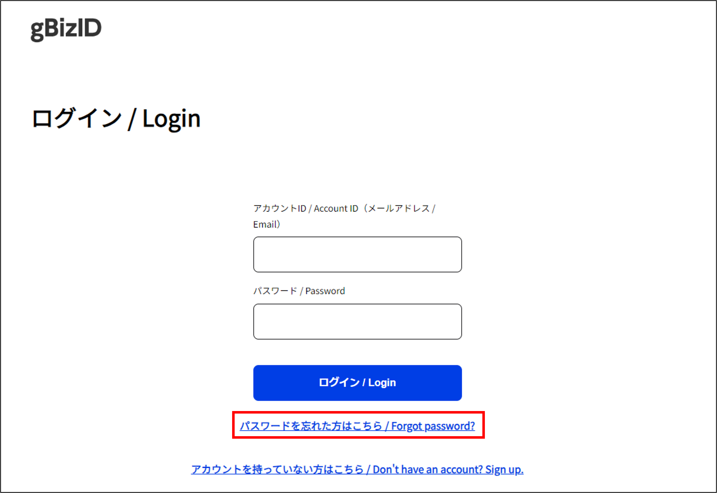1.以下のURLにアクセスすると、gBizIDのログイン画面が表示されます。