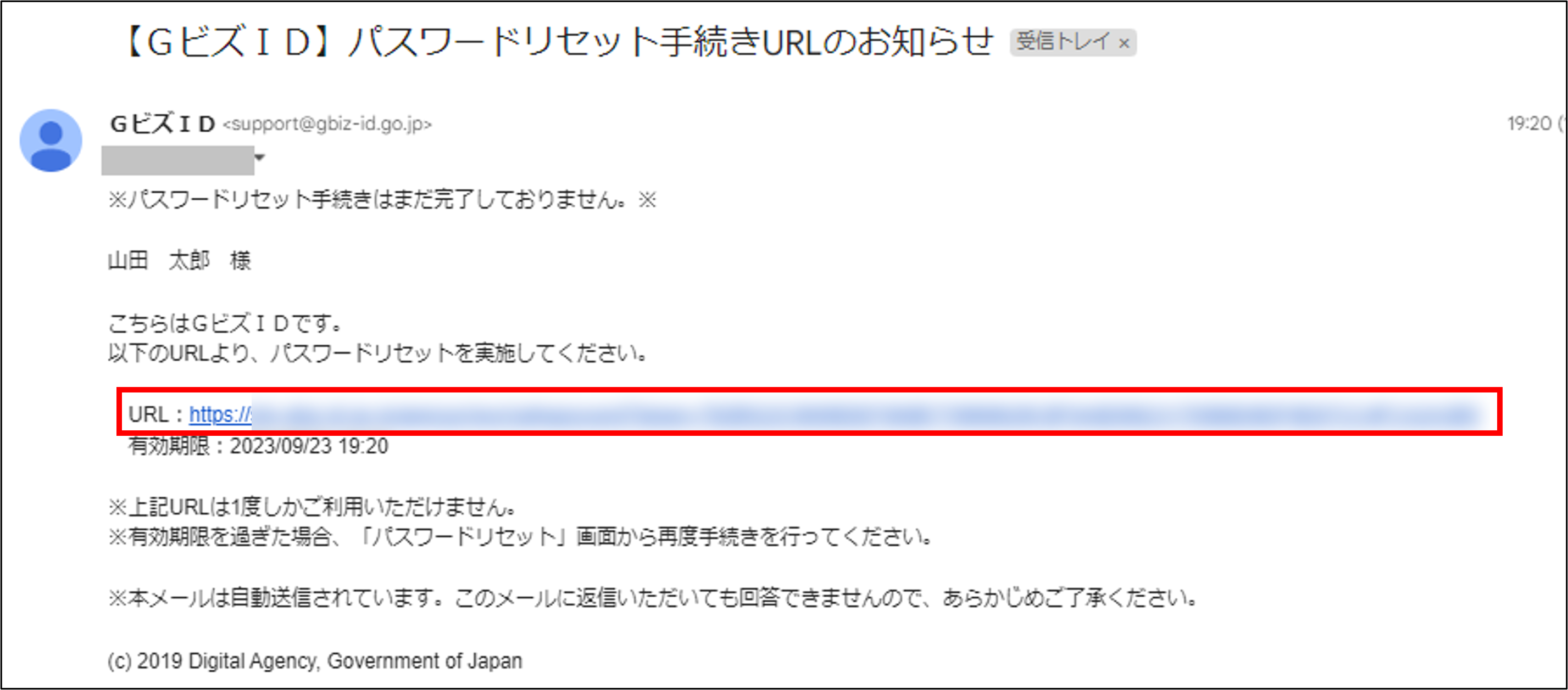 4.業務用メールアドレス宛に、パスワードをリセットするためのメールが届きます。
