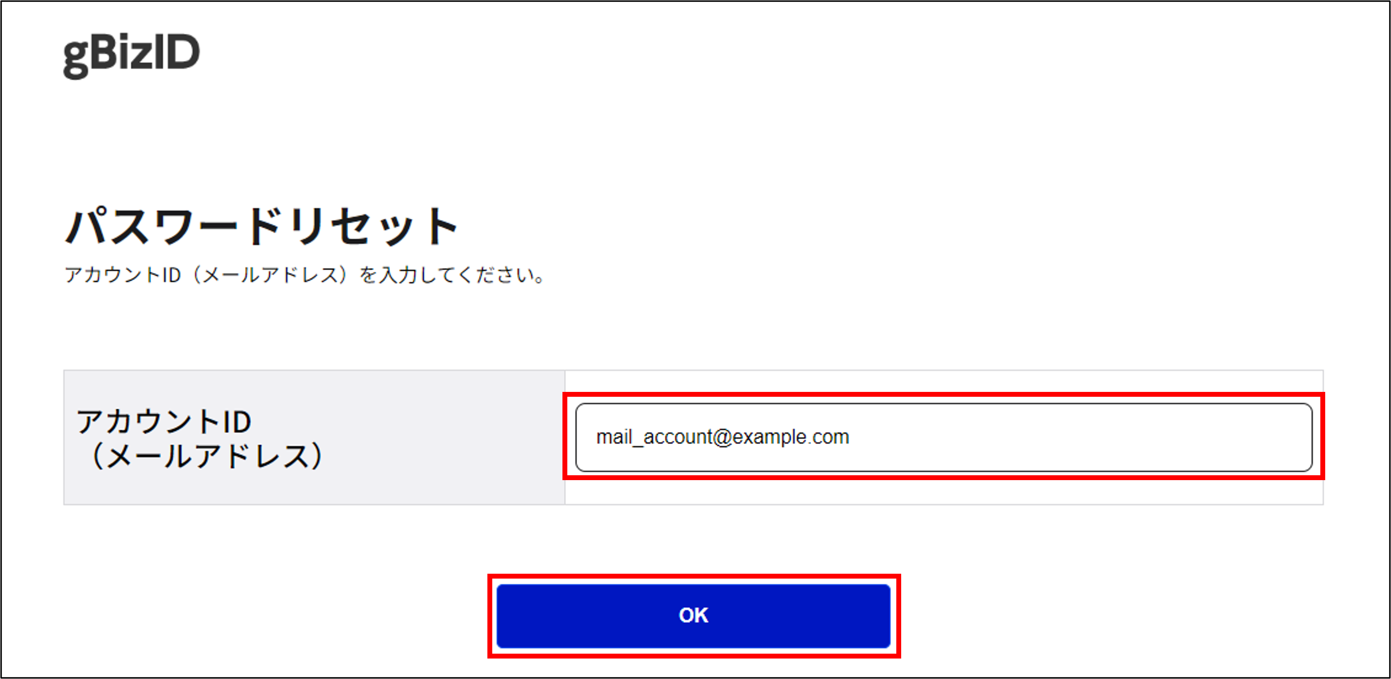 3.「アカウントID(メールアドレス)」を入力し「OK」ボタンをクリックします。
