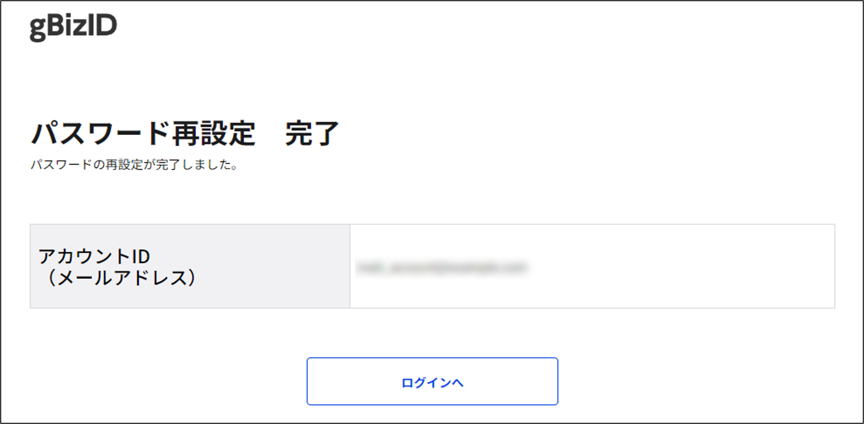 8.「パスワードの再設定が完了しました。」と表示されます。このタブは閉じて構いません。