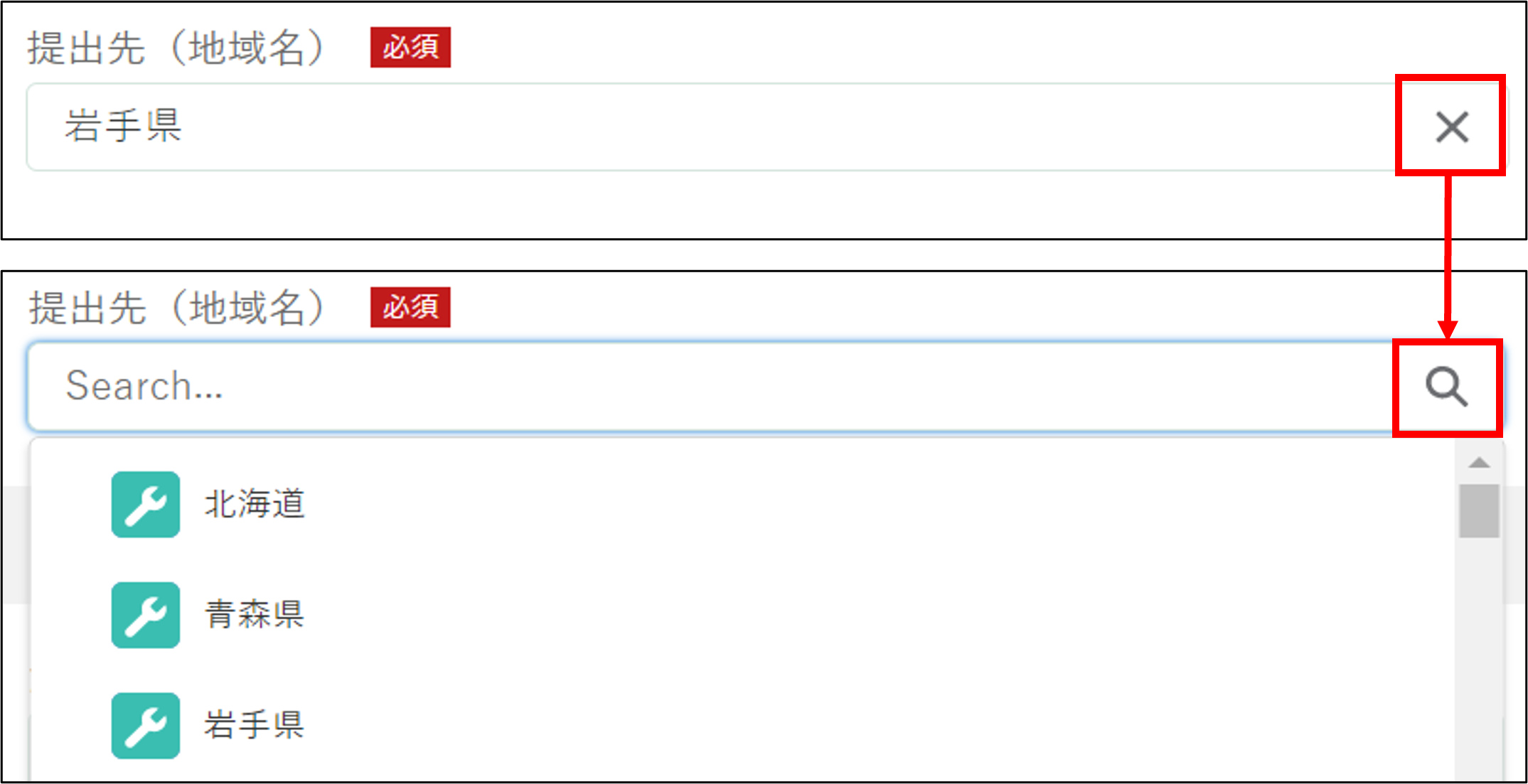 一覧から該当する項目を選択できるほか、選択したい項目の一部を入力し、項目を絞り込むことができます。