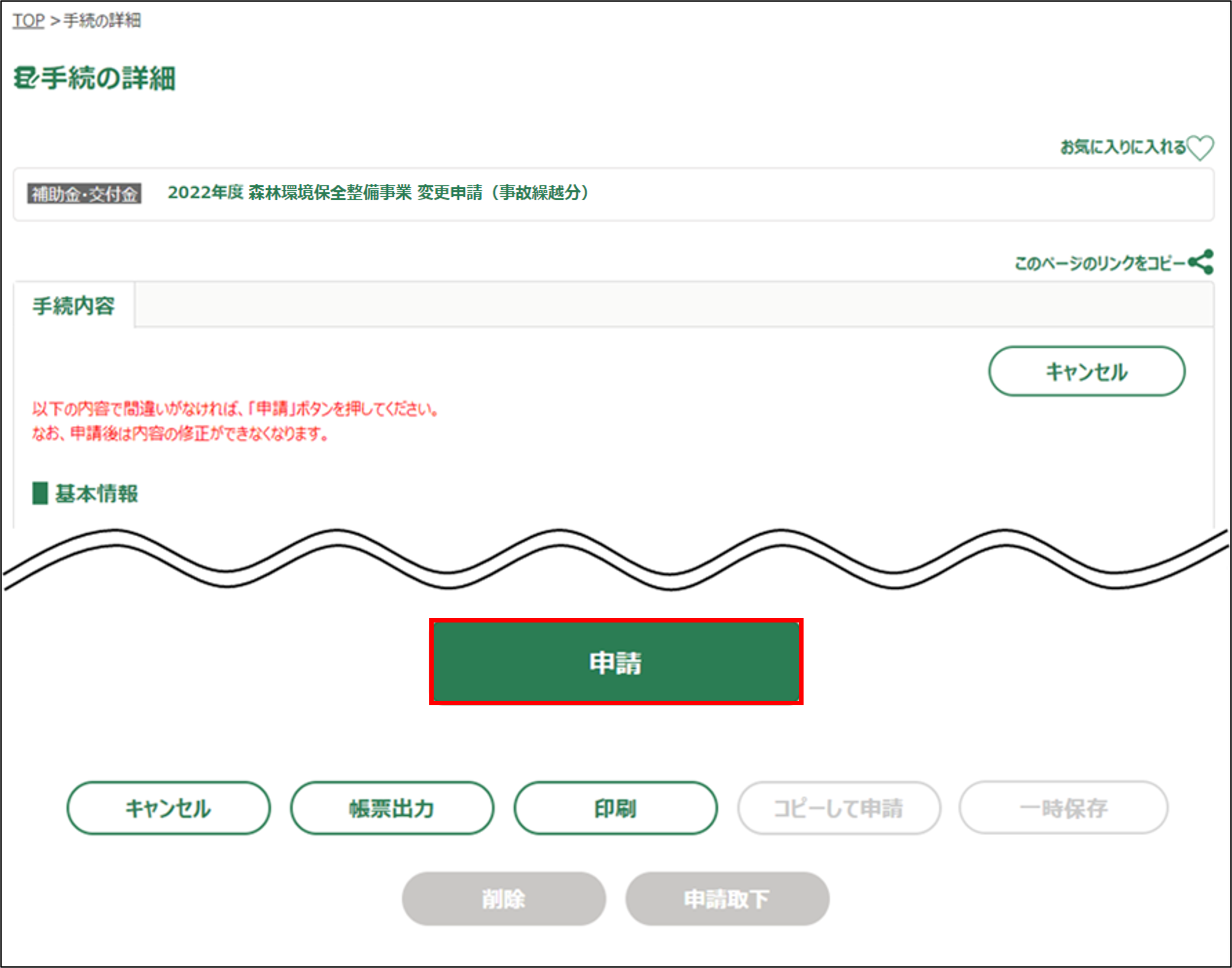 ※「別名義で申請」ボタンは、「森林環境保全整備事業」の申請では使用不可です。