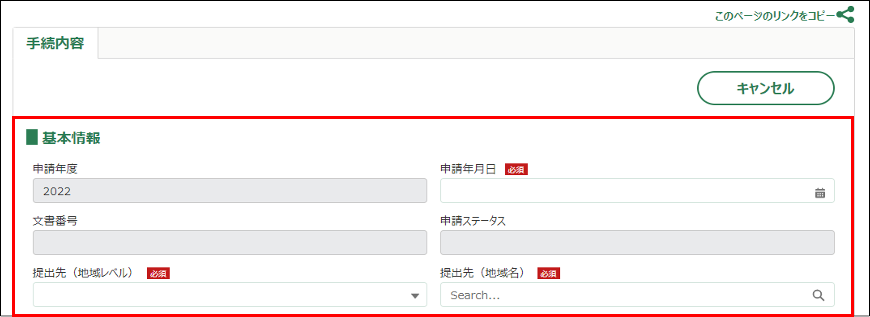 各入力項目の枠内をクリックし、申請内容を入力します。