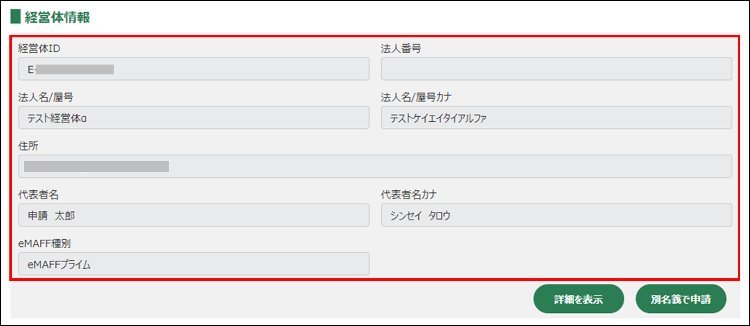 2.経営体情報を確認します(特に操作の必要はありません)。