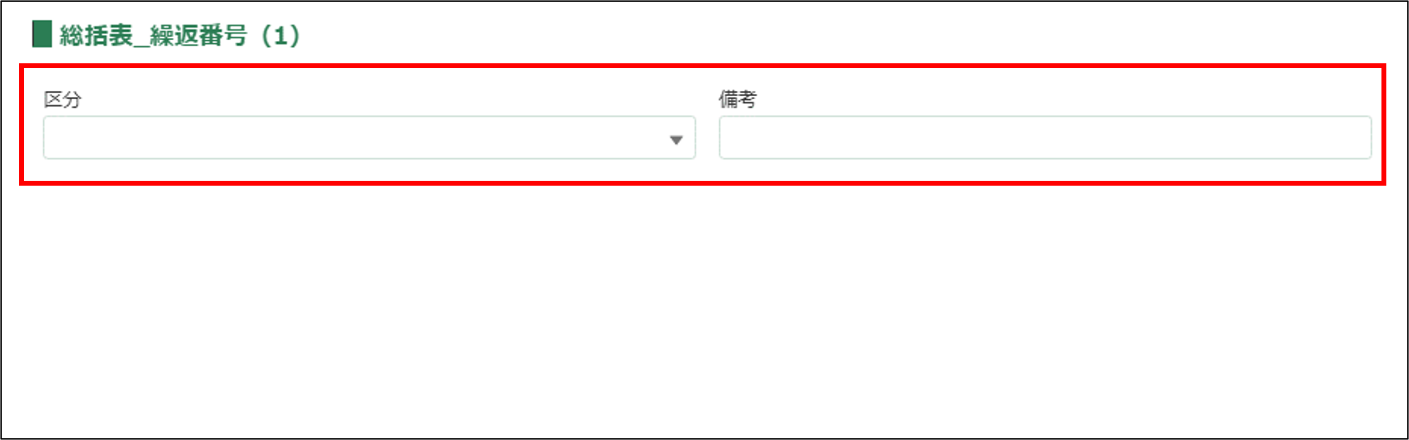 各入力項目の枠内をクリックし、区分と備考を入力します。