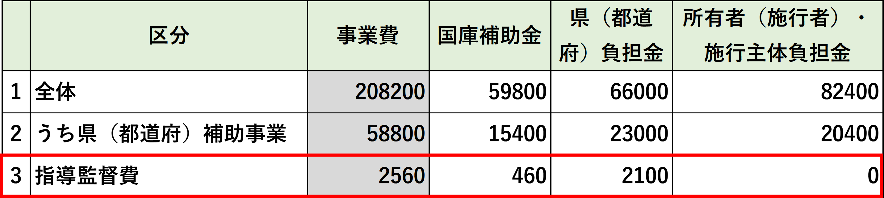 「本工事費等」と「指導監督費」の合計が表示されます。 |