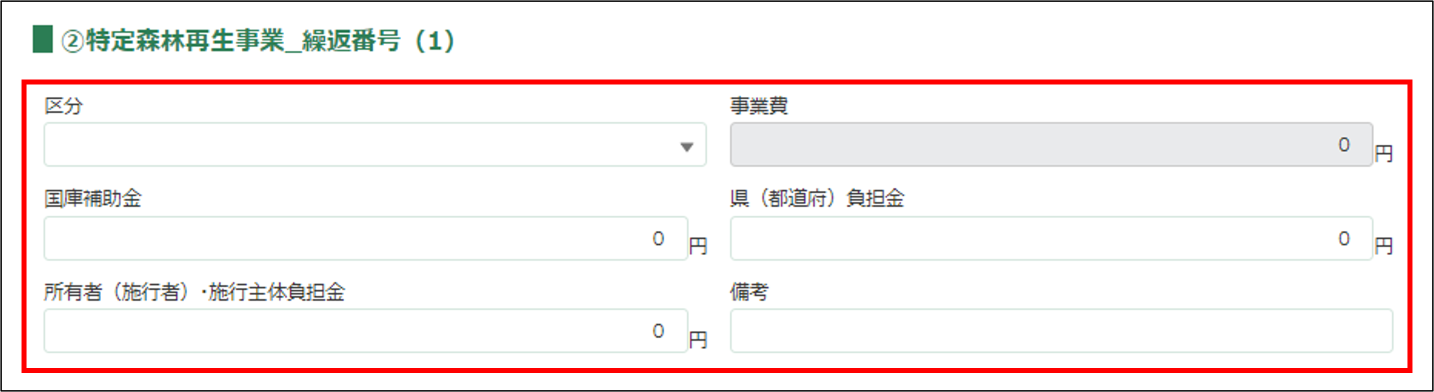 8.2 森林環境保全直接支援事業及び特定森林再生事業を入力します。