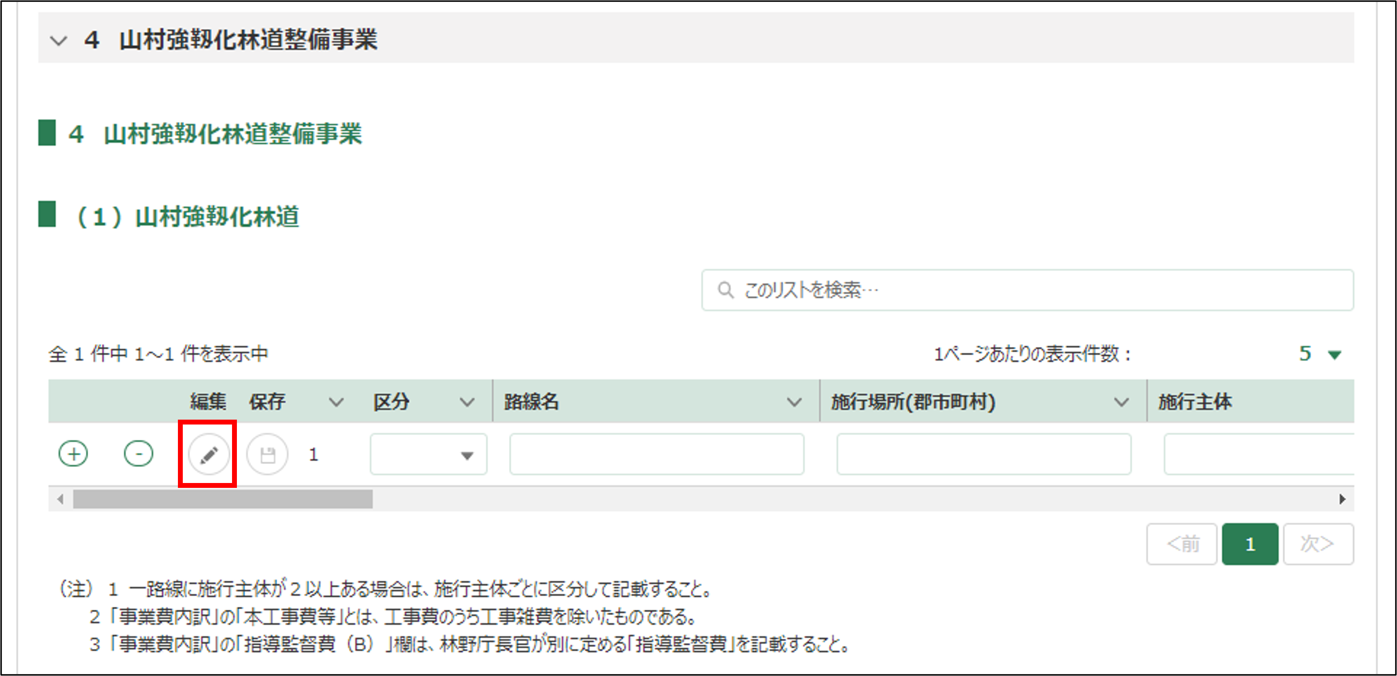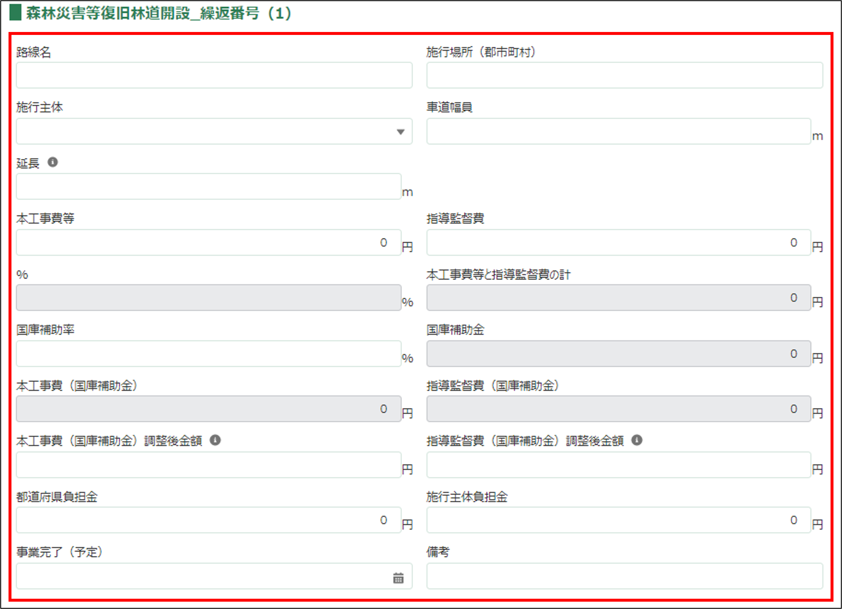 9.2の付1 森林災害等復旧林道開設を入力します。