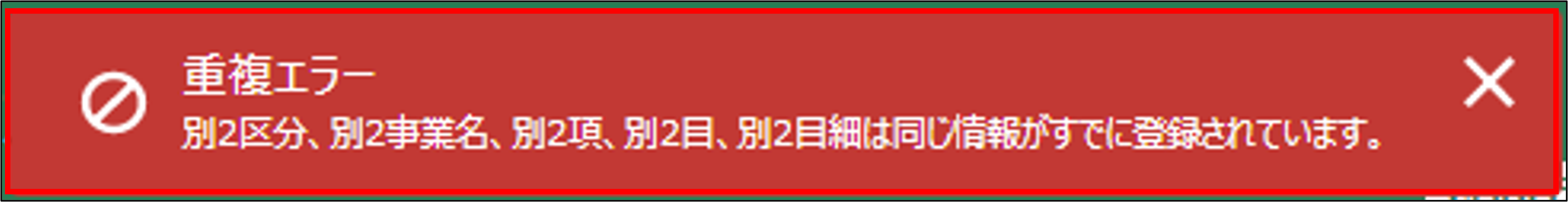 ・区分、事業名、項、目、目細のすべてが同じ行を追加する場合