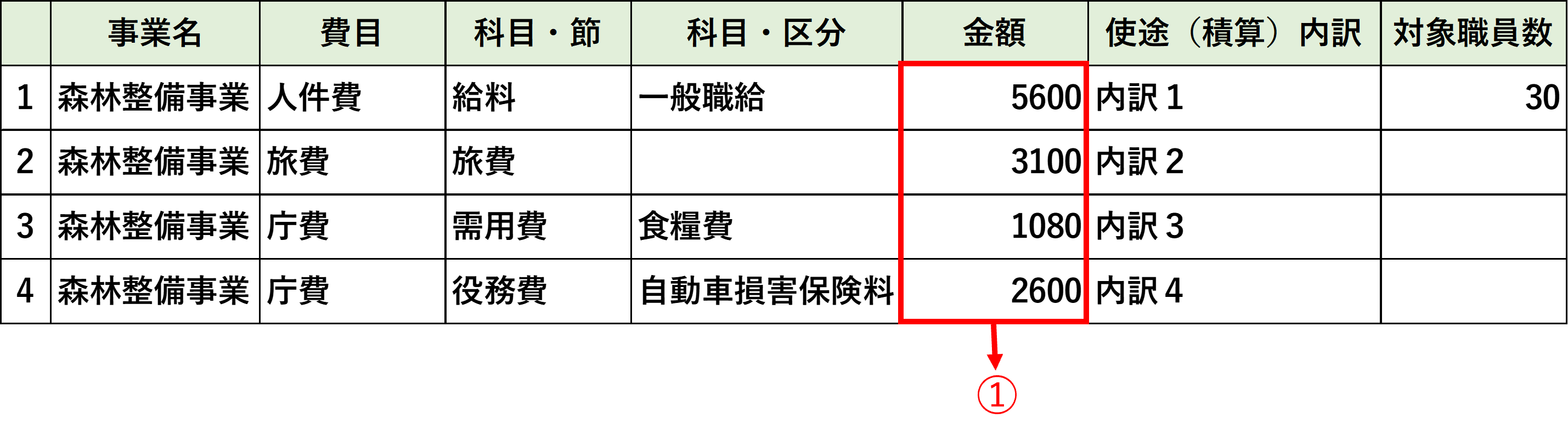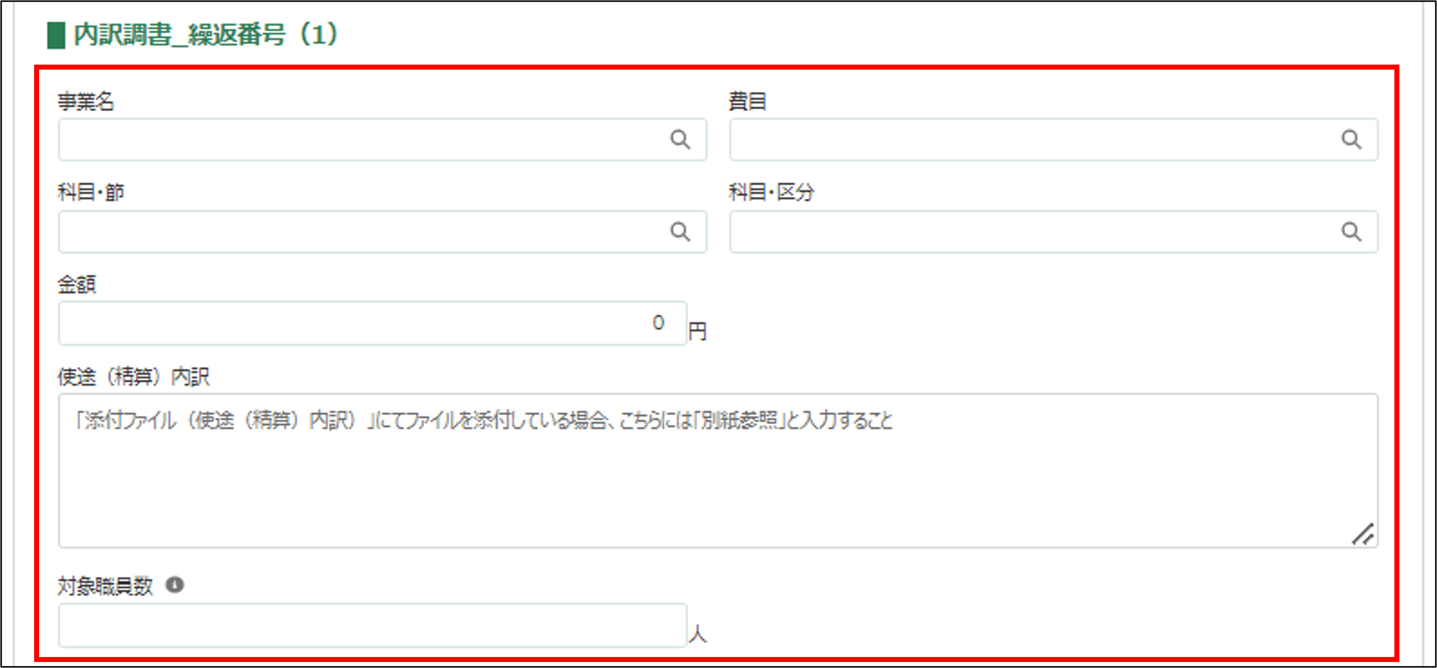 費目が「人件費」の場合のみ、対象職員数を半角数字で入力してください。 |
