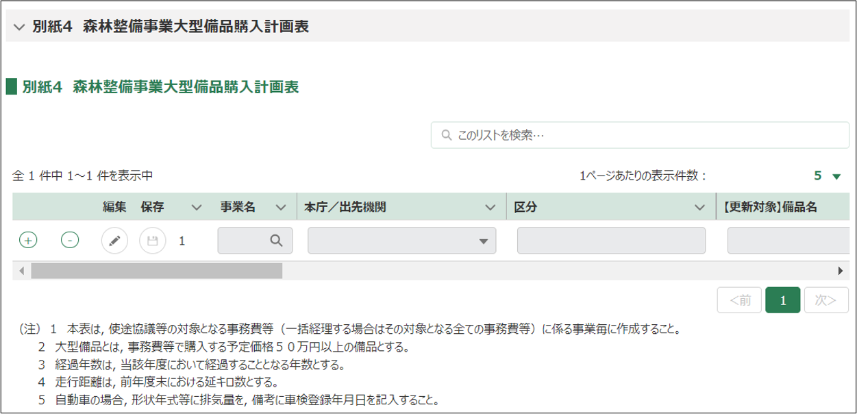 森林環境保全整備事業では各様式の備考が入力されている場合と未入力の様式がある場合に表示されます。