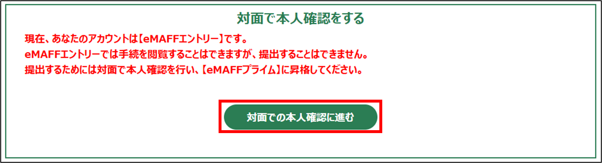 対面で本人確認を行い、eMAFFプライムを取得する手順を記載します。