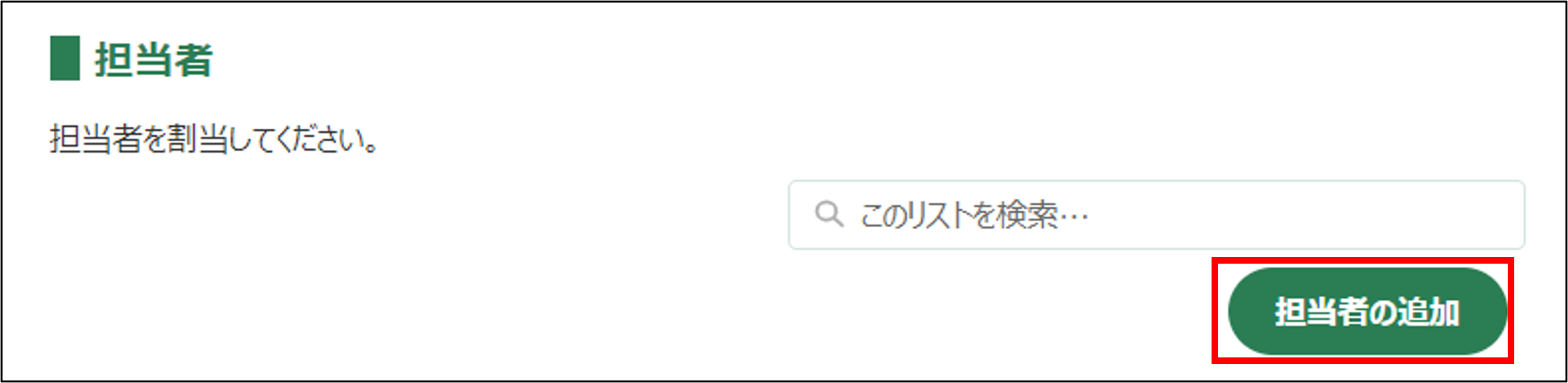 8.「代理申請タスクの割当」画面が表示されます。担当者欄の 「担当者の追加」ボタンをクリックします。