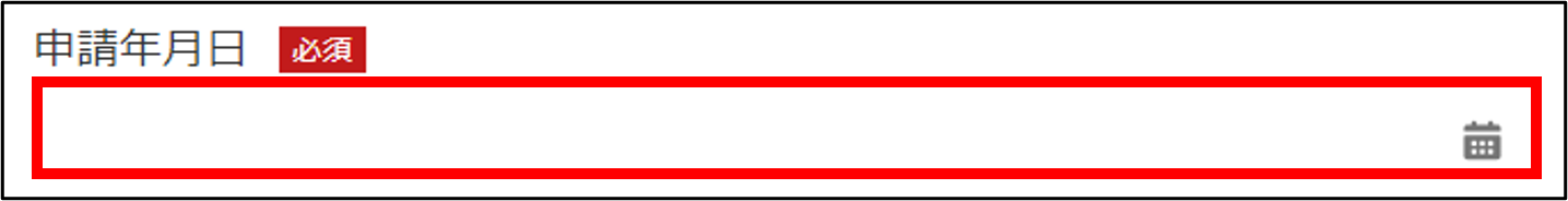入力する場合は、入力欄をクリックすると表示されるカレンダー上で申請年月日を選択するか、西暦で入力してください(入力例「2023/4/1」)。
