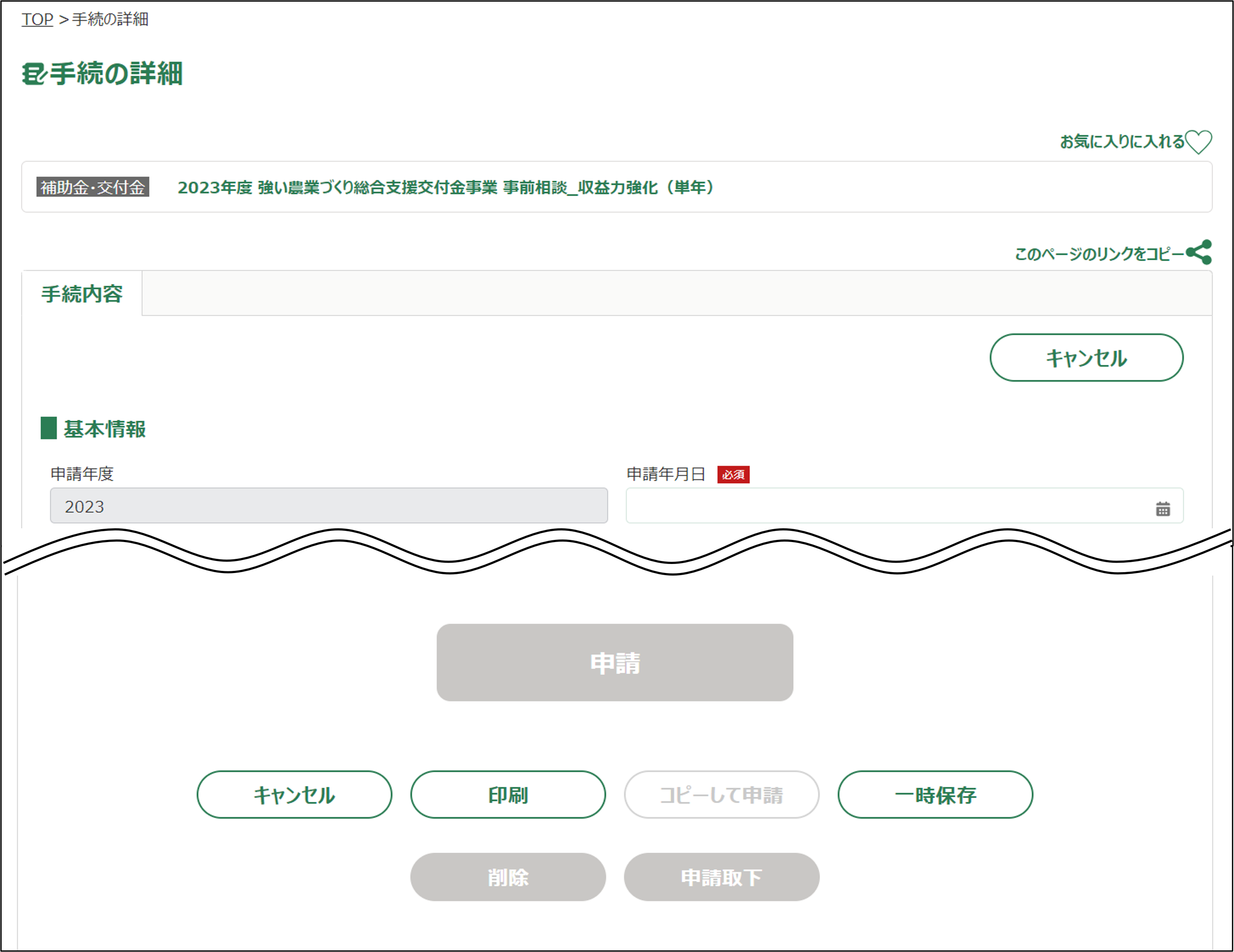 過去の申請情報をコピーし、変更箇所のみ修正して申請が可能です。