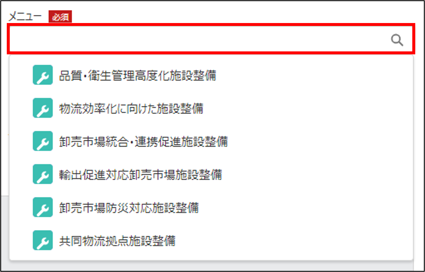 「メニュー」及び「類別」に以下を選択した場合のみ選択可能となります。