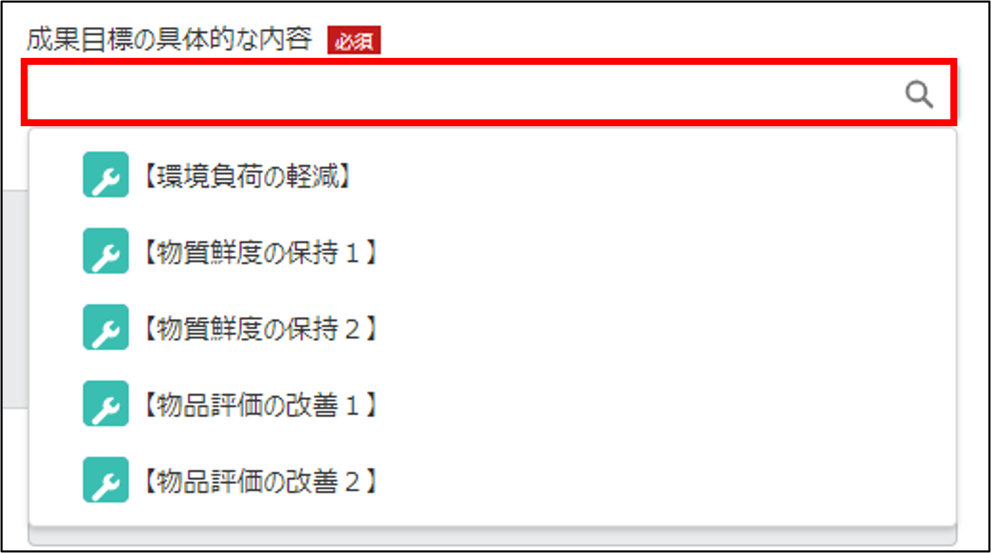 対応する「成果目標の具体的な内容」選択時のみ選択可能となります。