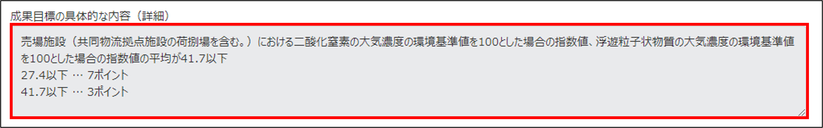 選択した「成果目標の具体的な内容(詳細)」に対する目標とする内容を入力してください。