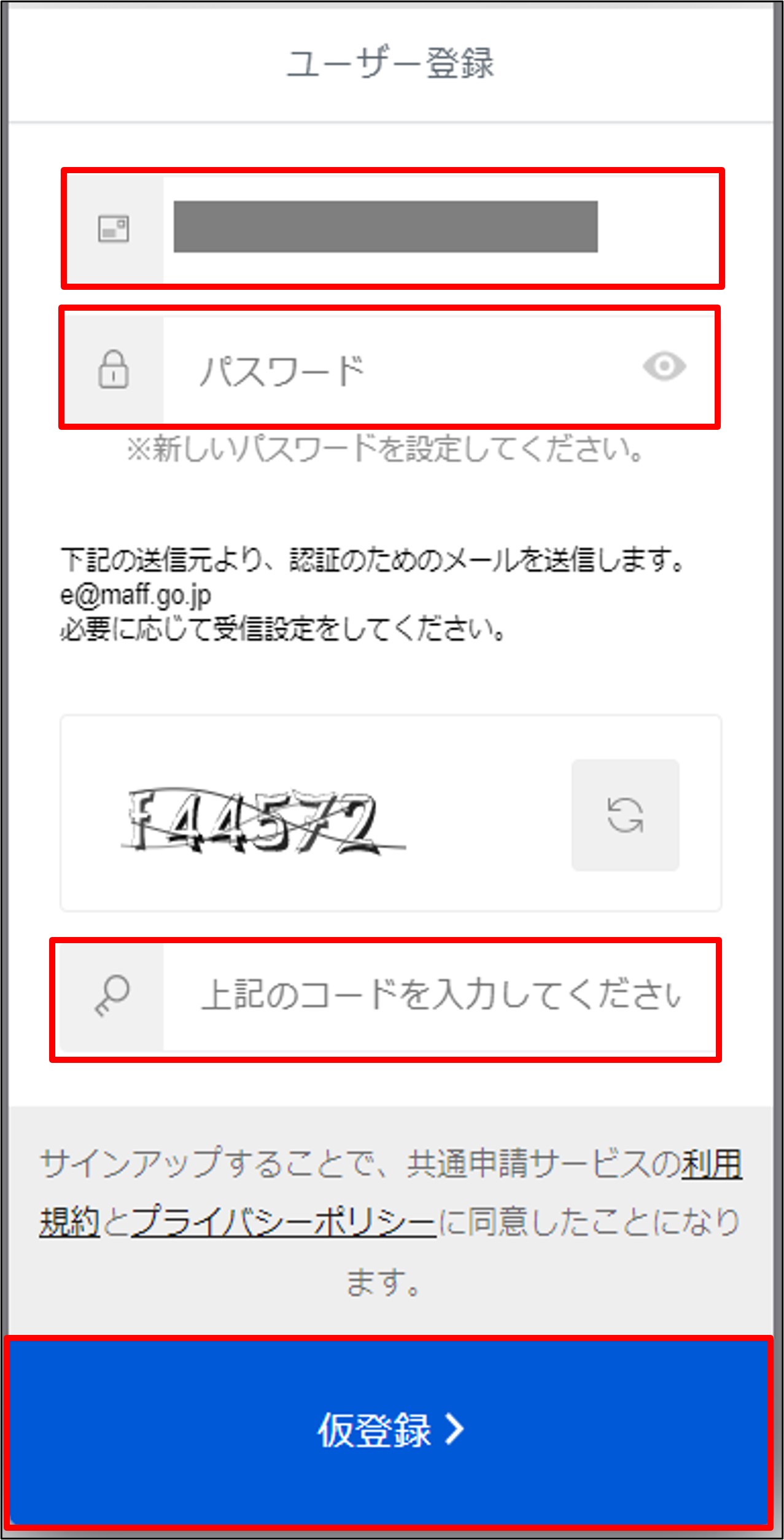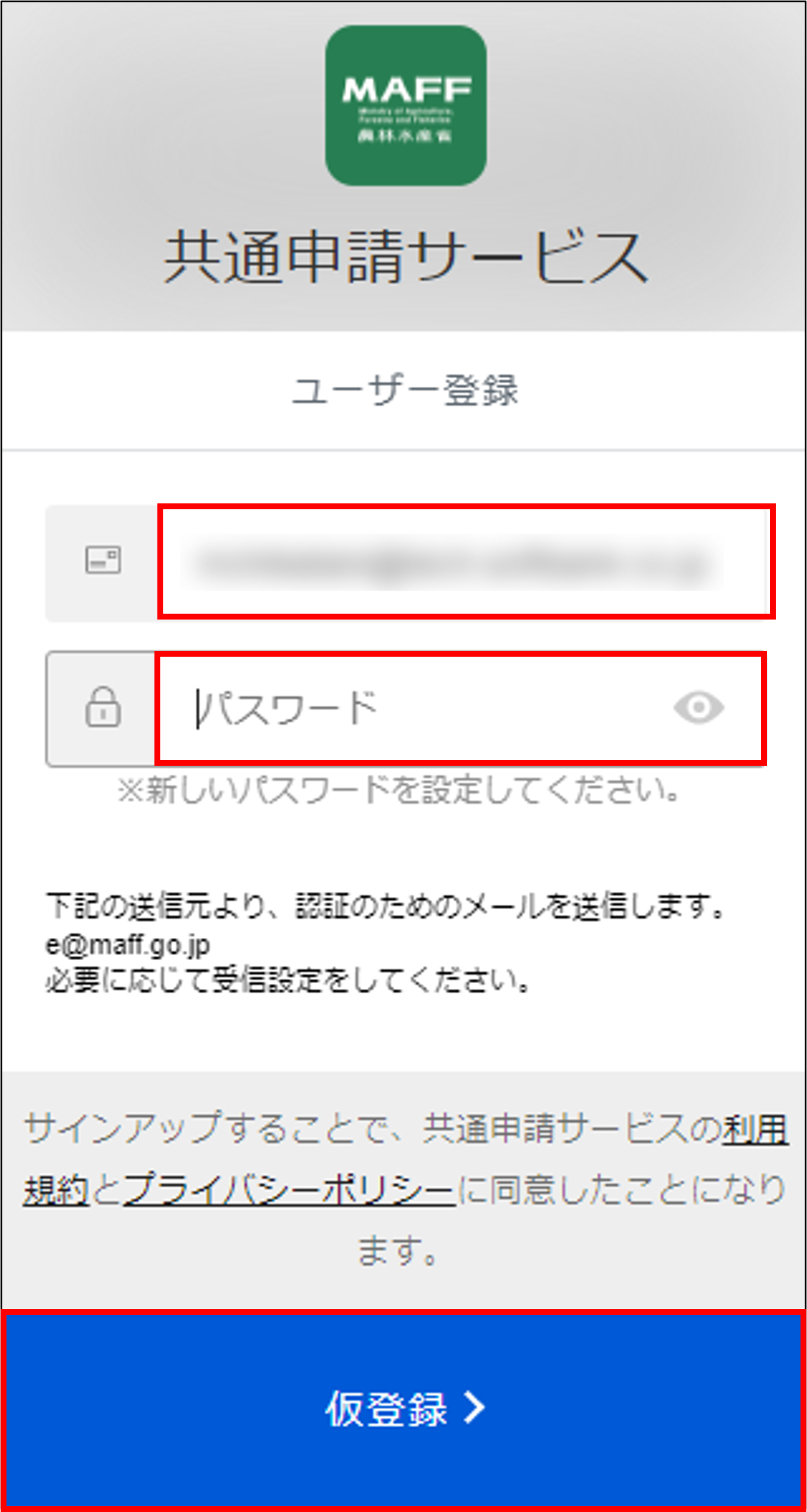 ※LGWANのメールアドレスをご利用の場合、あらかじめ@id.maff.go.jpのドメインのメールが受信できることをご確認ください。