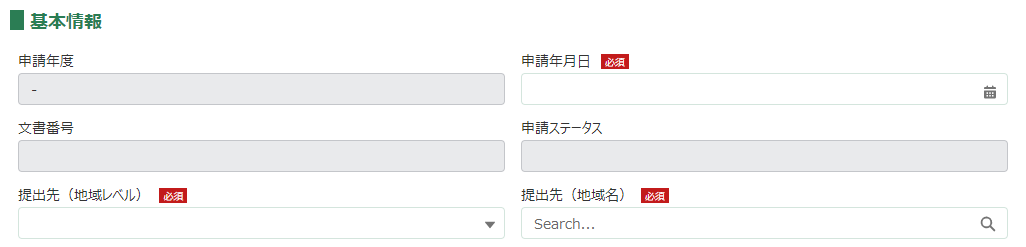 また、作成中の申請を一時保存する方法については「入力を中断し一時保存する・再開する」をご参照ください。