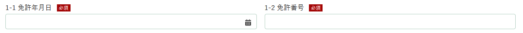 「1-1 免許年月日」及び「1-2 免許番号」を入力してください。