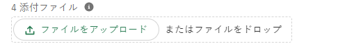 ファイルのアップロード」についてはこちらをご参照ください。拡張子が「.pdf,.docx,.xlsx」となっているファイルが添付可能です。