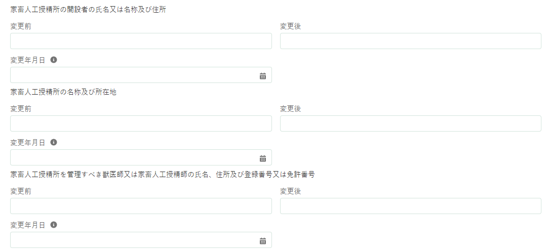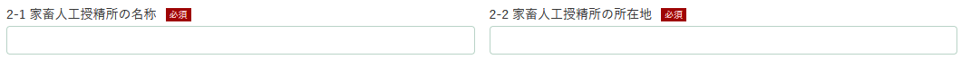 「2-1 家畜人工授精所の名称」、「2-2 家畜人工授精所の所在地」を入力してください。