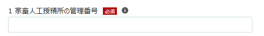 「1 家畜人工授精所の管理番号」を入力してください。都道府県から割り当てられた6桁の英数字です。