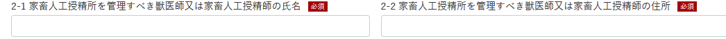 「2-1 家畜人工授精所を管理すべき獣医師又は家畜人工授精師の氏名」及び「2-2 家畜人工授精所を管理すべき獣医師又は授精師の住所」を入力してください。