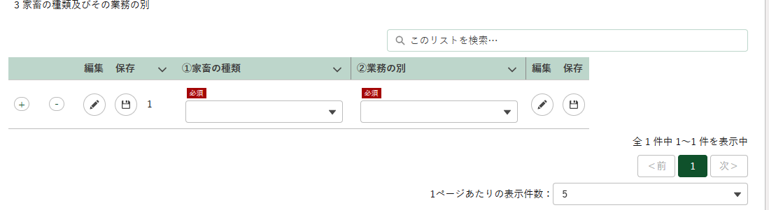 「①家畜の種類」については、リスト中の「牛,馬,めん羊,山羊,豚」から選択してください。