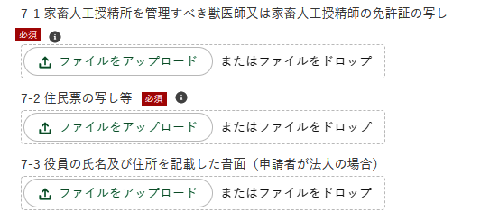 ・「7-1 家畜人工授精所を管理すべき獣医師又は家畜人工授精師の免許証の写し」(家畜体内受精卵の処理又は家畜体外授精業務を行う場合にあっては、当該家畜人工授精所を管理すべき獣医師の免許証の写し)