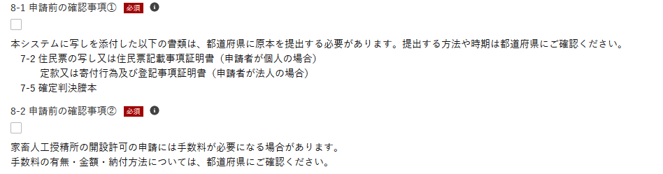 「8-1 申請前の確認事項①」、「8-2 申請前の確認事項②」をチェックしてください。