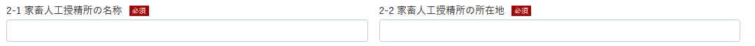 「2-1 家畜人工授精所の名称」、「2-2 家畜人工授精所の所在地」を入力してください。