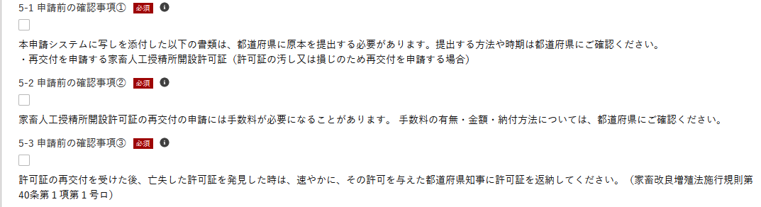家畜人工授精所開設許可証の再交付の申請を行います。